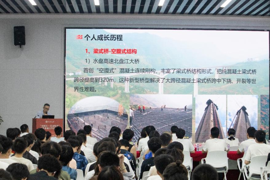 “青年要提升工匠五力——引领力、传承力、实践力、创新力、攻关力”。报告会上,郭吉平先生谈到了工匠精神的时代需求,他强调“目前社会基础技能人才供应还无法满足需求,基础技能人才短缺问题成为了制约社会经济发展的一个重要因素”,并鼓励青年员工提升工匠五力。“创新思维必须勇于走进‘禁区’,敢于跨越‘雷池’,打破条条框框的束缚,打破惯性思维的枷锁,才能创造出属于自己的东西。”天道酬勤,力耕不欺,参与建造桥梁56座,其中世界前100座高桥8座,他与同事们基于解决桥梁建造中面临的难题获授专利168项。他以恒心与毅力助力技术难题解决,生动地展现出“执着专注、精益求精、一丝不苟、追求卓越”的工匠精神。
