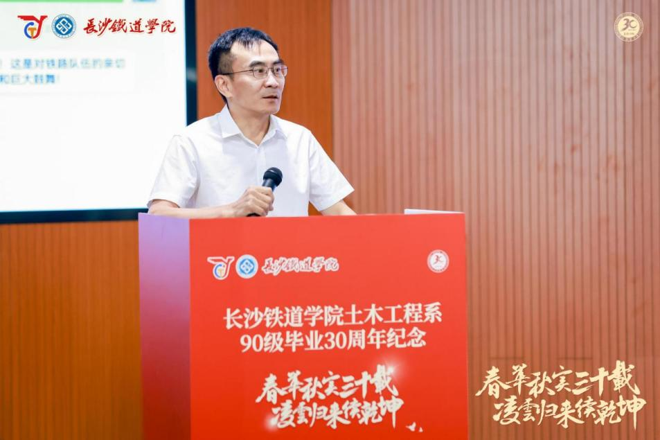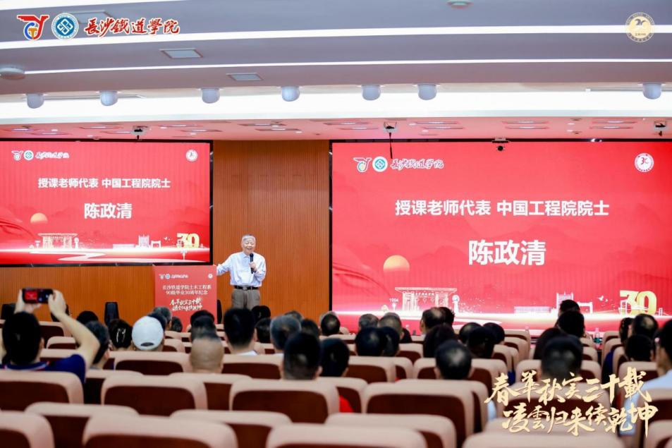 中国工程院院士陈政清作为授课教师代表上台讲话。他动情回忆了与90级员工们的相处时光,表示十分怀念共同奋斗的日子。并向员工们讲述了土木工程在国家民生建设的重要地位,交流了土木工程中长期的发展规划。