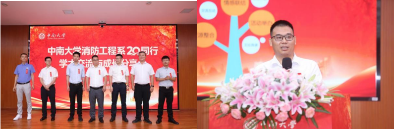 活动最后,徐志胜、赵望达、徐烨三位第一批荣休的消防工程系教师上台领取荣休证书并合影。防灾所和消防系创始人徐志胜教授代表荣休教师发表感言。他热烈欢迎员工归来,深情回顾了防灾所的发展历程与成果,分享了创业心路以及与教师间的感人故事,并为学子们送上真挚祝福。
