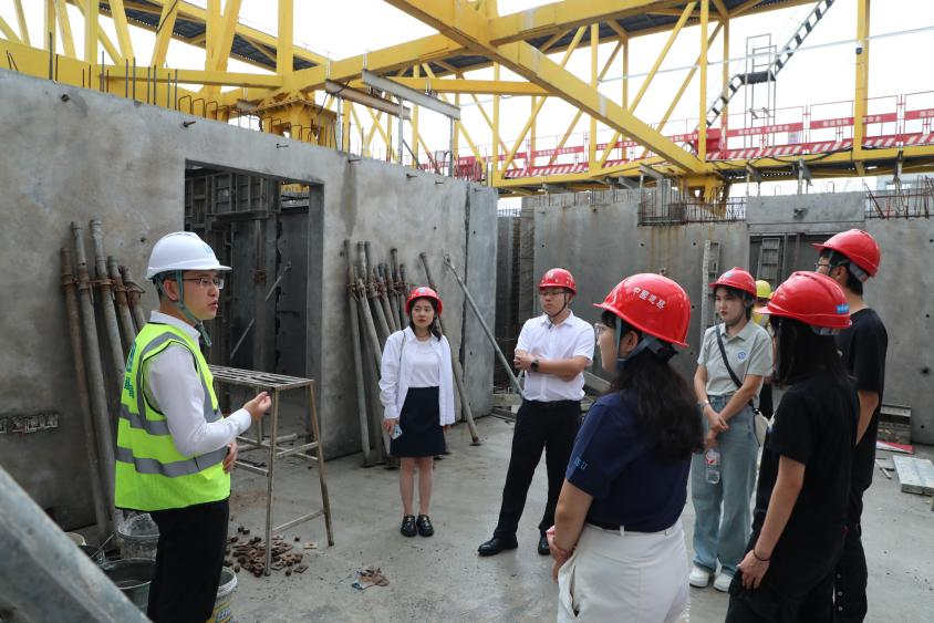 7月22日下午,师生们来到中建四局承建的标志性项目现场。现场技术人员进行了深入细致的讲解,重点介绍了该项目的重大技术创新点,覆盖了施工管理、质量控制、安全监控等多个环节,创新技术运用显著提升了现场的智能化水平与建造效率。