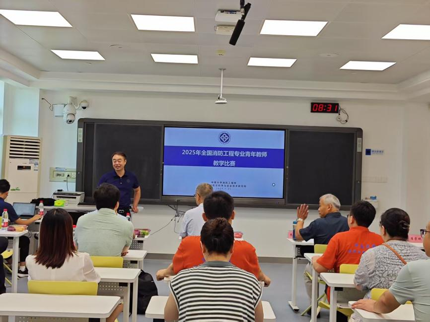 随后,15位来自全国各高校的消防工程专业优秀青年教师参与角逐。讲课内容涵盖防排烟工程、消防给水工程、流体动力学、建筑防火、安全法律法规、事故调查、阻燃材料与技术等消防工程专业核心课程,课堂设计融入情景模拟、小组讨论、实时互动等多元形式。中场休息期间,青年教师们展开热烈讨论,相互学习交流。
