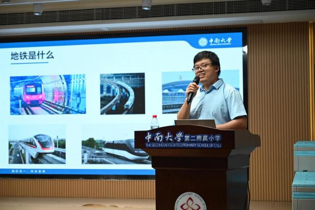 随后,李伟老师从“地铁是什么”、“地铁选线”、“地铁施工”和“中南铁路黑科技”四个方面,运用有趣的视频、生动的图片和直观的动画,向同学们系统普及了城市地下铁路建设的相关知识。首先李老师引导同学们识别并讨论了地铁、磁悬浮列车、轻轨等不同类型的轨道交通工具,深入浅出地讲解了地铁的定义、特点及其与城市发展的紧密联系。