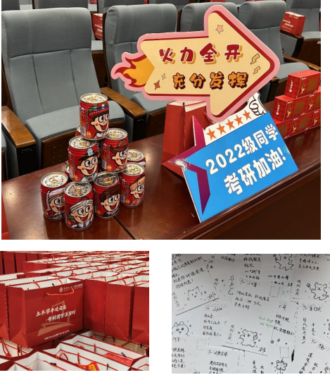 后续本科2022级辅导员和员工助理走访员工寝室,把考研加油包交到未到场的备考同学手上,深入了解同学们的备考情况和需求,为他们加油打气。