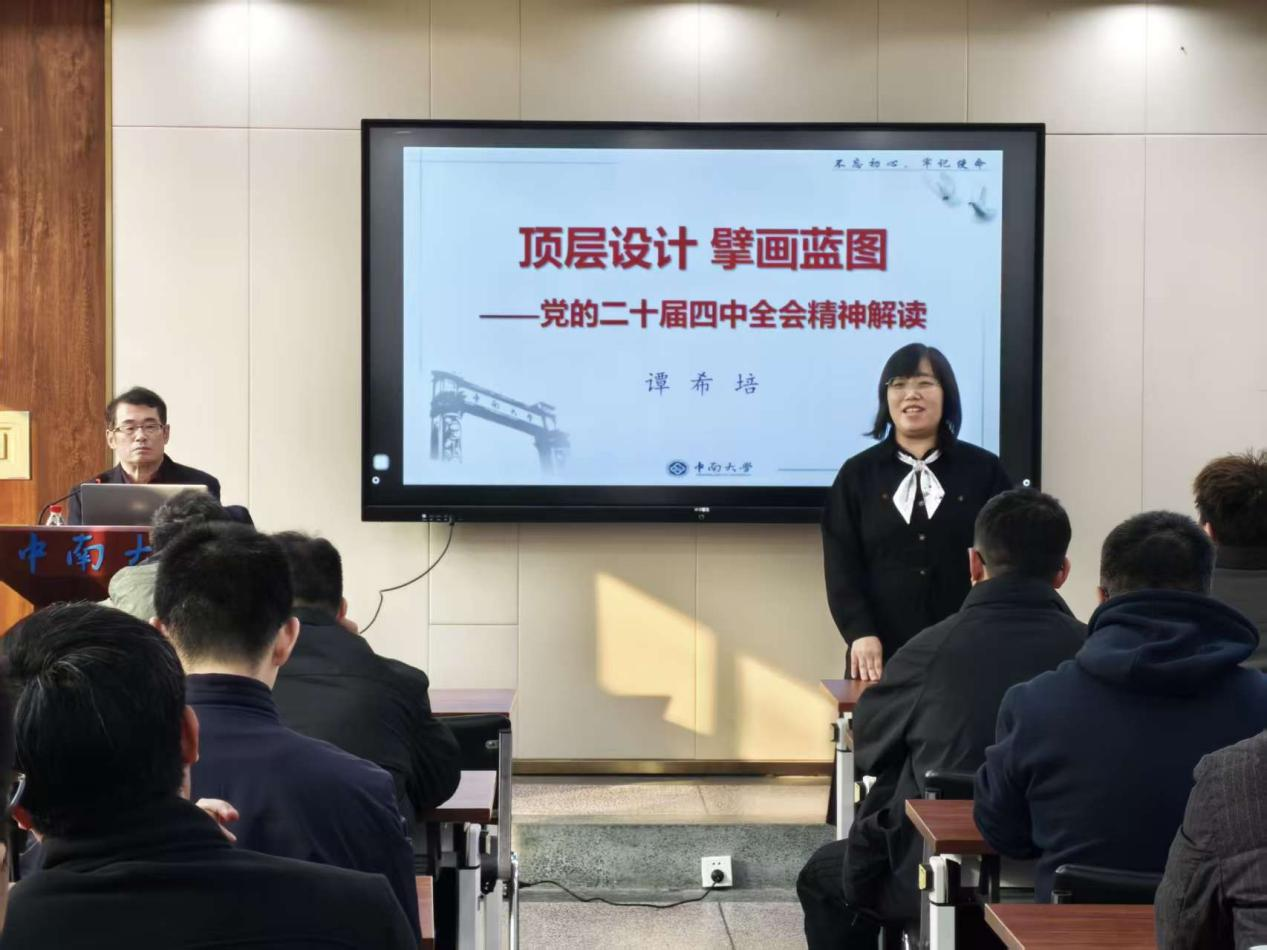 马克思主义公司原党委书记谭希培作题为《顶层设计 擘画蓝图——党的二十届四中全会精神解读》专题报告,解读习近平总书记在党的二十届四中全会上的重要讲话精神,解析全会的重大意义、“十四五”时期取得的伟大成就和“十五五”时期的重要地位、我国发展环境面临的深刻复杂变化,引导党支部书记切实将全会精神转化为更好服务保障个人履职的强大动力、具体举措和实际成效。