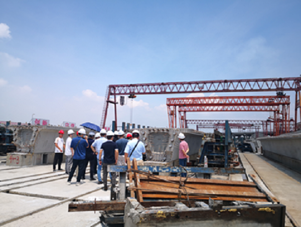 在参观完平益八标的项目后,青年教师实践队乘车赶往位于湘阴县的平益十四标项目部。在项目部工程师的陪同下,参观了平益十四标南阳特大桥预制梁制作、架梁以及桥面铺设现场,学习了解了路桥公司项目部的精细化管理模式。