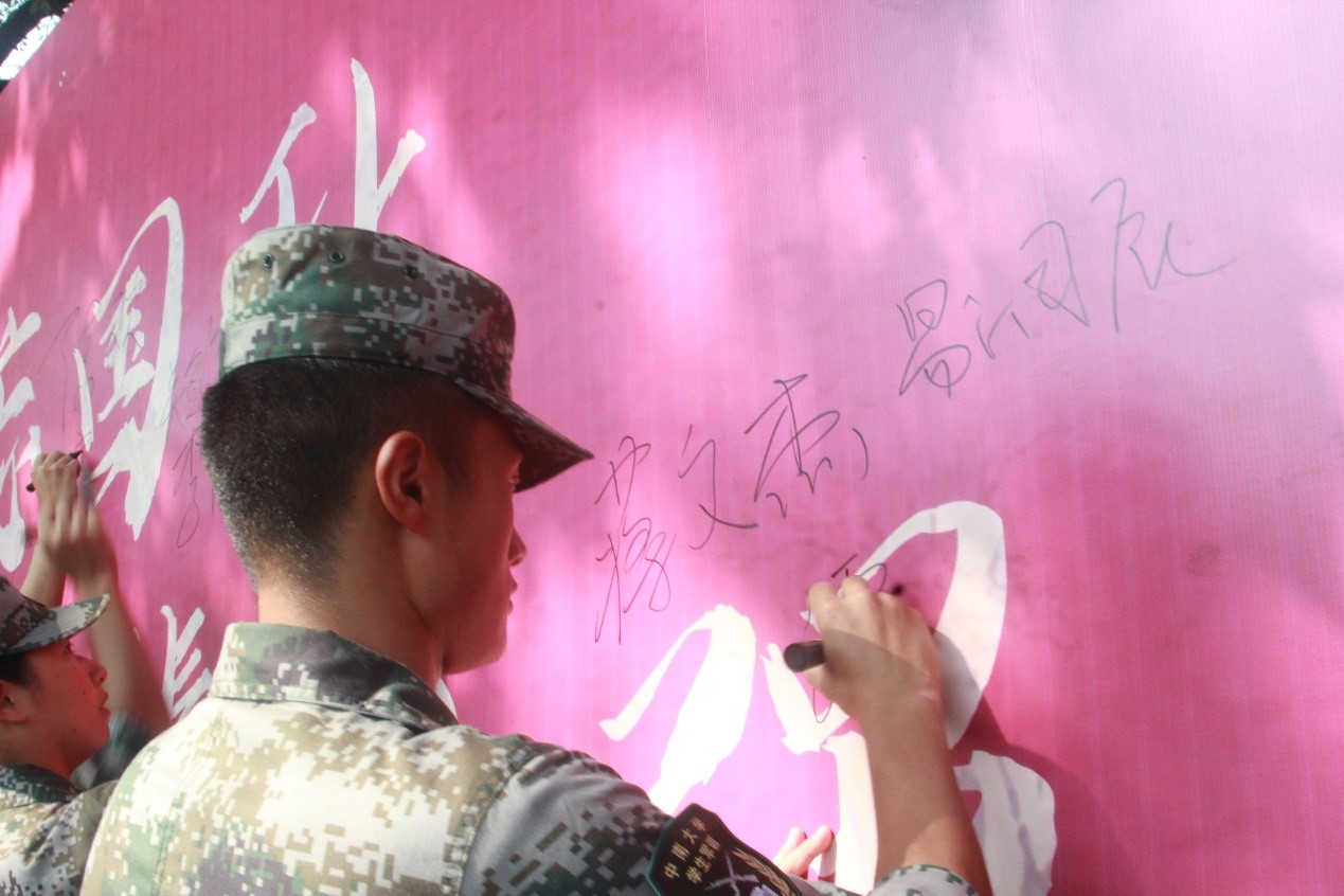 活动最后,全体教官及员工代表在签名墙上签名。书写姓名更是承担责任,英姿飒爽的教官们把保家卫国的责任坚定扛在肩上,铭于心中。
