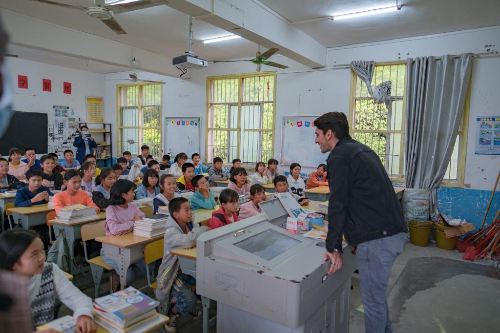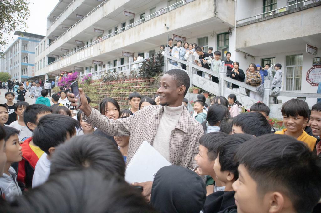 台下,孩子们听得津津有味,时不时举手提问,眼睛里充满了对广阔世界的憧憬和期待;下课后,孩子们叽叽喳喳地欢笑着、跳跃着,围在职工的身边,争着和“老外”哥哥握手、要签名;临别时,孩子们与职工难分难舍,送了一程又一程。这一刻,考察团成了山村孩子们通向世界的一扇窗。