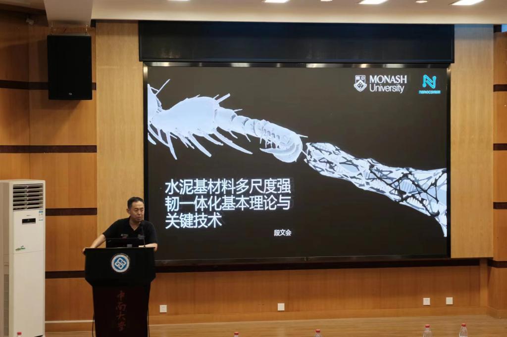 受聘仪式后,段文会教授作了题为《基于跳蚤骨骼的结构设计基元研究进展:无序结构的高维解构》的学术报告。报告聚焦基于节段式结构损伤定向诱导导致连续性破坏垮塌的特点,由段教授团队建立损伤诱导机制,提出了基于节段式结构基元的工程材料增韧新方法,并通过增材制造技术验证水泥基材料强韧一体化设计。