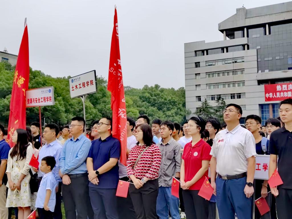 岳麓山畔,湘江水滨,《不忘初心》和《我和我的祖国》悠扬的旋律在校园回荡,唤起了华夏儿女心中对祖国无尽的热爱与感激。“向往你的向往,幸福你的幸福”,抑扬的曲调是每位师生的共鸣心声,慷慨的誓词是所有学子的志之所向。七十四载风雨兼程,七十四载弦歌不辍,歌声娓娓道来祖国一路走来的坎坷与成就,也诉说了此时此刻所有中国人满腔自豪之情。