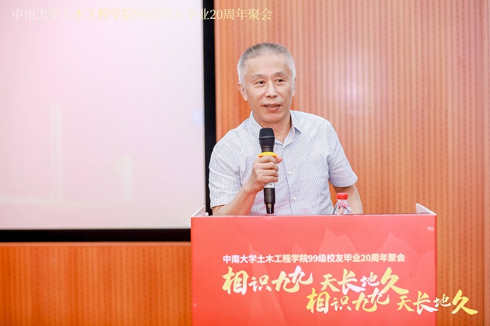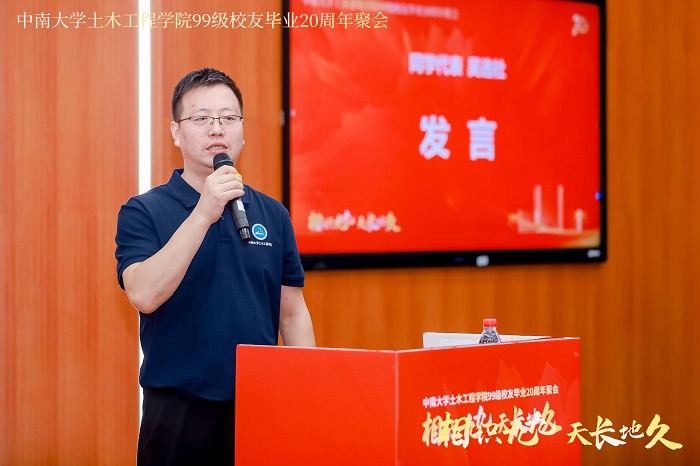 员工代表工程管理专业吴选社进行了发言,感恩母校,向母校领导、老师及同学汇报了工作和生活情况,感谢母校领导、老师和同学们对员工的关心和支持,并表示未来要加强与母校母院的联系,要更加努力工作,服务社会,贡献国家。