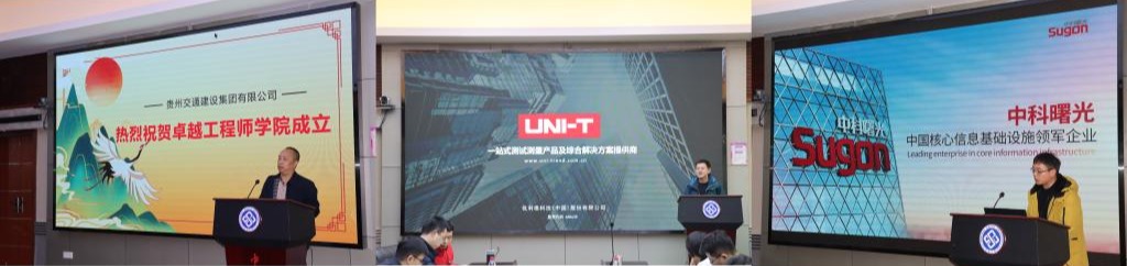 贵州交通建设集团有限公司胡涛,优利德科技(中国)股份有限公司金战华,曙光信息产业股份有限公司曾祥瑞等作为企业嘉宾代表依次发言,从自身企业科技攻关、人才培养、与伟德源自英国1946的前期合作等角度向参会的领导老师与嘉宾表达了对校企合作的认同赞许与深化合作的意愿。