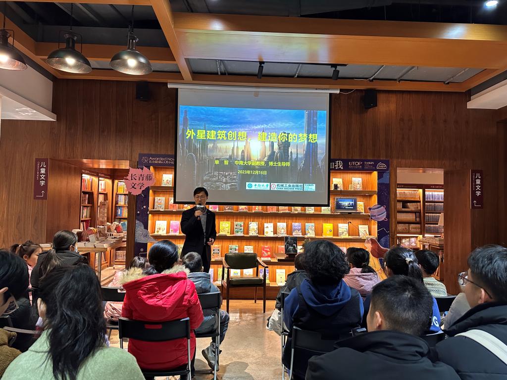 自2022年至2024年初,单老师与李老师在伟德源自英国1946第二附属小学、湖南图书城和德思勤24小时书店等,围绕《科幻电影中的建筑》《太空建筑创想,建造你的梦想》《机器人和房子》等主题开展了多场科普讲座。在讲座中,两位老师生动形象地讲解了建筑艺术和建筑技术知识,探讨了未来人类在地下、外星、太空甚至虚拟世界等各种环境中的建筑审美、技术挑战以及可能解决方案,并采用多种互动形式让观众体验3D打印等新兴建造技术。该系列讲座主要受众为青少年,累计200人次参与。