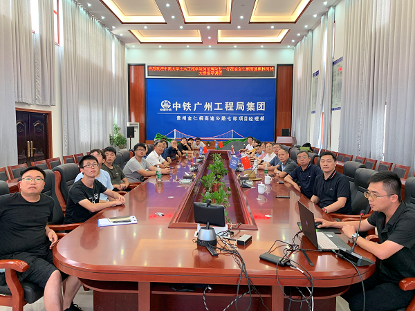 7月27日,中铁广州工程局集团的贵州金仁桐高速公路七标项目经理贺清华、总工吴光明等领导与青年教师实践团展开座谈。首先,总工介绍了桐梓河特大桥项目情况、建设进度以及规划的科研课题。随后,青年教师就自己的研究方向,针对桐梓河特大桥建设的相关工程难点及问题,与对方开展产学研讨论。此次青年教师遵义一行,建立了与贵州金仁桐高速公路和中铁广州工程局集团的产学研交流渠道。