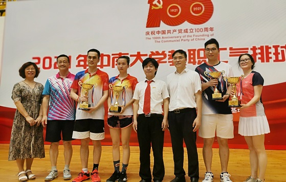 教职工气排球比赛在校工会领导的见证和强力组织下逐渐落下帷幕,公司男女排队员代表公司获颁各个奖项,队员们拼搏进取,团结奋进的精神也受到了校工会部门领导的认可、肯定和表彰。队员们纷纷表示,希望工会组织更多类似团体比赛项目,切实增强教师们利于科研生产工作之余时间充分锻炼身体,增强公司教职工凝聚力和向心力,以优异成绩庆祝中国共产党成立100周年。