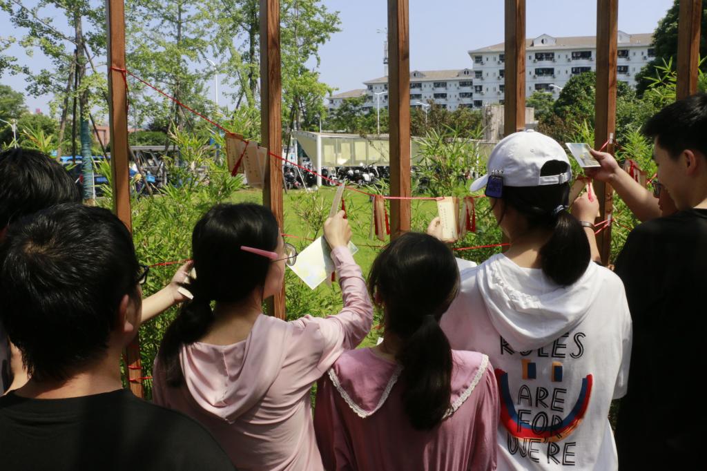 讲座之后,同学们参加了游园会的活动。从知识展览“守桥人”团队成员生动有趣的讲解,到猜灯谜、搭桥挑战、桥梁飞花令、识桥挑战和记忆力挑战五个站点的趣味互动,每一站都兼具了教育意义和趣味性,游园活动采取集章的方式,完整打卡六个站点之后,即可进行抽奖。让同学们在轻松愉悦的氛围中学习到了桥梁的结构知识、设计美学以及与桥梁相关的诗词文化。活动现场热闹非凡,同学们的热情和初夏的太阳一起活跃了问渠长廊。