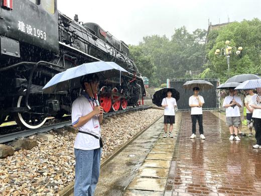 作为庆祝原长沙铁道公司建校六十周年的一份厚礼,铁路园园区呈露天式开放,有四条线路,三条线路上分别陈列三台机车,每一条线路,每一台机车都背负着中国轨道发展的重要使命。研学之初,全体党员站在铁路园正中央,由志愿者带领回顾铁路园的由来以及建设过程。紧接着,志愿者从铁路发展历程、三辆机车的结构特点以及从铁道公司走出的著名铁路员工事迹等进行生动讲解,让党员同志们获益匪浅。