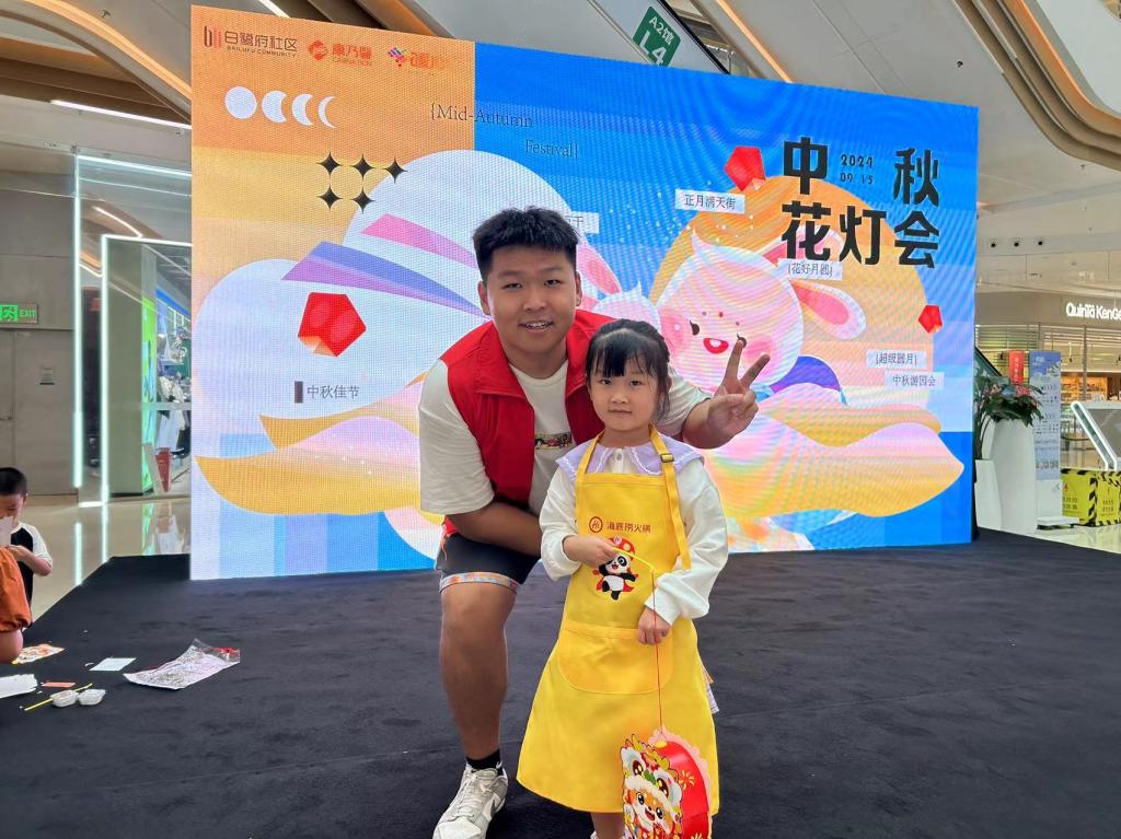 清晨八点半,志愿者们准时来到洋湖天街商场协助进行场地搭建,并组织参与居民有序签到和领取物料。在手工艺人的带领下,孩子们身穿靓丽的黄色围裙,认真学习着冰皮月饼的制作方法。志愿者们身披红色马甲,穿梭在活动现场,为小朋友们答疑解难,耐心引导,积极帮助。伴随着欢快的音乐和热火朝天的讨论声,一枚枚圆润可爱的月饼从孩子们的手中诞生,灿烂的笑容绽放在现场每个人的脸颊,为此良辰佳节更添一分青春的蓬勃朝气。