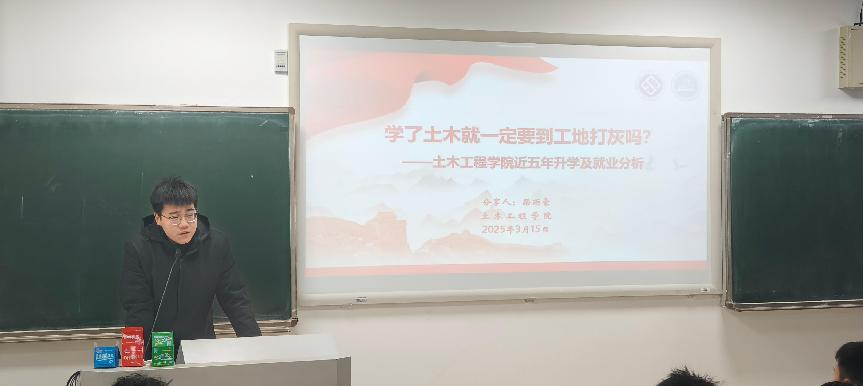 为深化专业认知教育,赋能员工成长规划,bevictor伟德土木安全大类2024级年级组于本周末在潇湘校区A101教室举行了两场专业认知交流分享会。本次交流聚焦专业分流背景下的新生发展规划需求,通过系统解读近五年毕业生发展数据,为百余名参会学子提供精准决策参考,会议由辅导员梁雨豪主持。