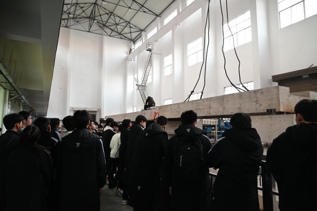 在风洞实验室,同学们探寻了“12级台风来袭,高楼大桥何以安然无恙”的答案。志愿者首先讲解了实验室的建设背景——它是为了模拟极端风环境、保障重大工程安全而建造的。通过清晰的工作原理介绍和生动的操作演示,让同学们了解工程师们如何在这里利用精密仪器,对建筑与桥梁模型进行抗风测试,从而优化结构设计。讲解还延伸至风洞实验室在土木工程抗风、城市防灾减灾等领域的关键研究方向,以及团队在大跨桥梁抗风安全等方向取得的突破性成果。