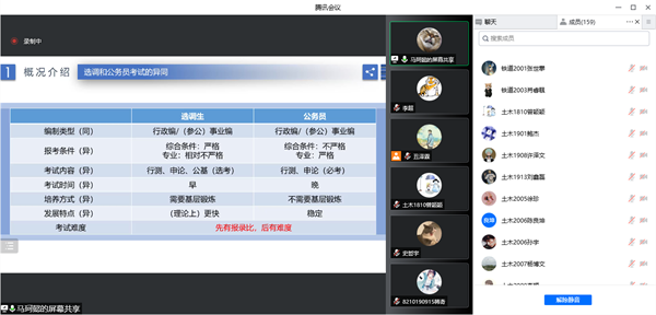 分享会期间,备考的同学就考研动力、考试前的注意事项等方面提出问题,与学长们取得良好的互动,活跃了分享会的氛围,参会人数一度达到了231人。最后,学长学姐们对参加会议的同学表达鼓励和真挚的祝福。分享会最后,组织委员丑泽霖对八位分享经验的党员同志的付出表示感谢,同时也祝福同学们能在考研路上坚定信心、忍受孤独,找寻到属于自己的考研之路。此次交流会,不仅给即将保研的同学提出了宝贵的经验,也给立志考研的同学们指引了方向,同时使同学们对考公过程有一个更具体清晰的认识,为以后的选择打下坚实的基础。