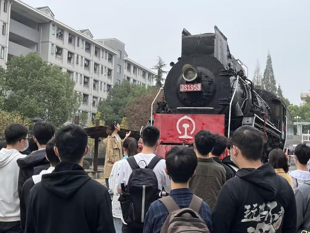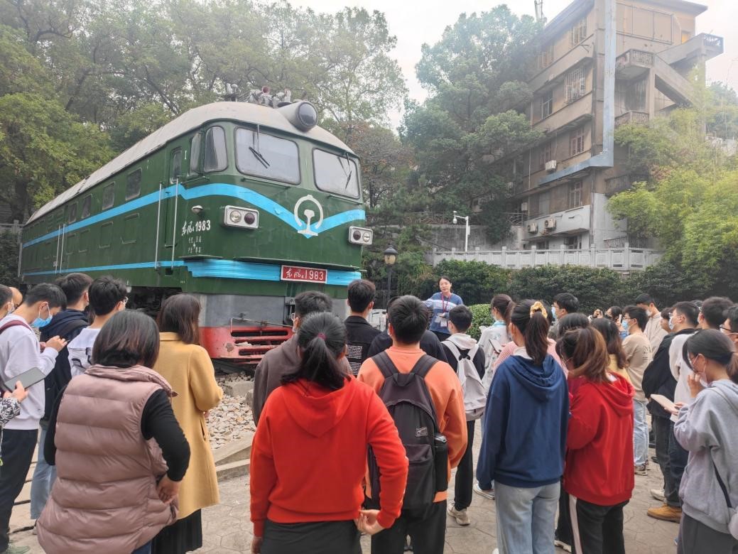 讲解员对机车上铭牌含义的讲解给各位学员留下了深刻的印象,上方左边的“绿皮车”标的是1983,为东风4型内燃机车,是中国火车发展史上内燃机车的代表。右边标有的2013则是三辆火车机车中最先进的,它是电力机车的代表。而最下方广场上的标有1953的则是最有年代的蒸汽机车,同时,1953年为中南土木建筑公司铁道系组建的年份,数字1953有着纪念铁道公司的前身的含义。