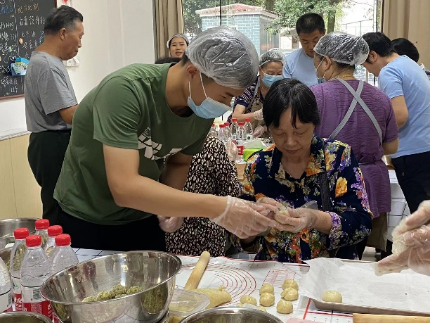 活动进行时,土木院团委、研桥梁第二党支部志愿者们分为烘焙室、棋牌室、游戏室三个志愿服务小组同时开展志愿服务工作。烘焙室里,在社工刘阿姨讲解绿豆饼制作流程后,志愿者们细心协助老干部们制作绿豆饼,以积极的行动对老干部们进行陪、答、帮、烤、递全程服务。游戏室里,志愿者们积极组织,让看图猜成语、你划我猜、知识竞答等小游戏顺利开展起来。棋牌室里,老干部们打牌时把军队事迹娓娓道来,志愿者们热情陪同,细心关注老干部们任何需求。