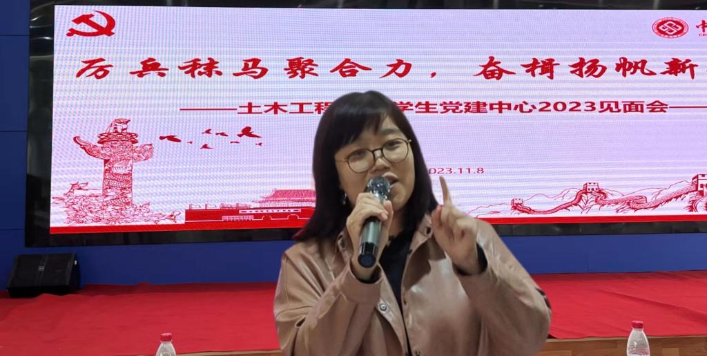 张淼老师关注部门成员的成长成才,同学们不仅要坚定理想、勤于学习、勇于奋斗、加强修养,更应不忘初心、将小我融入大我之中,在学习中增长知识、锤炼品格。希望同学们能加快健全员工党建中心,在党建中心的工作中增长技能才干、练就过硬本领。