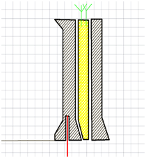 模型有三层,第一层类似一个窄的刚性护栏。第二层设计则是护栏最重要的缓冲部分,可以填入一些类似的柔性材料。第三层的设计并无特殊,是一个完全固结在地面上的结构,作为第二层形变吸能的支撑,同时也是作为最后的一道防线,防止护栏被彻底冲破。左图为简画护栏断面图。