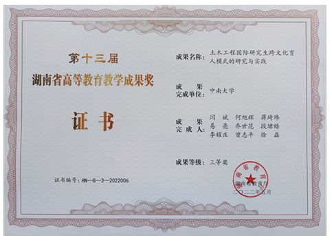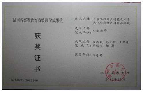 高等教育省级教学成果三等奖 |