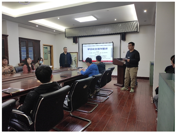 学位论文集中体现了员工培养质量和学术水平。高质量、高水平的学位论文不仅在内容上具有创造性与新颖性,在表达描述上也应具有一定的规范性和严谨性。规范学位论文管理是建立良好学风、提高人才培养质量的第一步。会上,同学们认真学习了论文相关规范要求,汲取论文规范写作经验,以完善学位论文当前存在的不足。