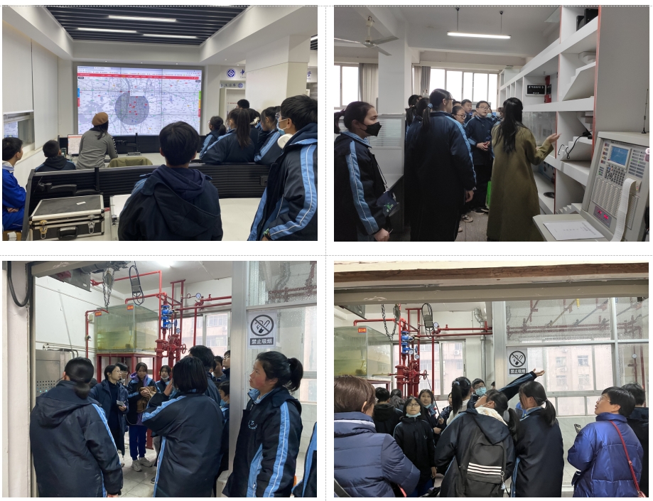 在第一综合实验楼六楼,硕士研究生曾文欣介绍了基于大数据、物联网、地理空间系统和云计算等技术的智慧消防系统;庄彦贞演示了消防报警与联动控制试验;谢晓晴副教授详细讲解了防火卷帘的动作方式和消防喷淋装置及作用原理。同学们感叹到对消防安全有新的全面的认识。