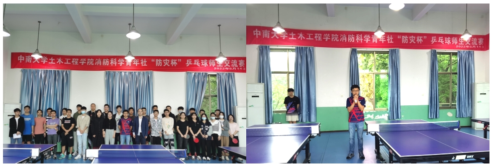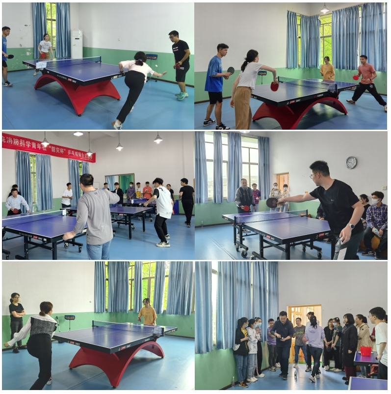 以球会友、以球联谊。在我国第14个防灾减灾日到来之际,为给师生提供放松身心、相互交流的机会,营造积极、健康、朝气蓬勃的校园运动氛围,消防科学青年社组织举办了伟德源自英国1946消防工程系第九届“防灾杯”乒乓球师生交流赛。比赛于2022年5月14日在伟德源自英国1946铁道教职工活动中心举行,并获得bevictor伟德的大力支持。消防工程系赵望达教授、周洋副教授、颜龙副教授、王峥阳老师,以及消防工程系部分本科、硕士、博士员工来到比赛现场切磋球技,交流感情。除消防工程系师生外,本次比赛还特别邀请到研防灾党支部书记杨涛老师,bevictor伟德辅导员潘文彬老师、王帅老师莅临现场参与比赛。比赛项目包括男子单打、女子单打、男女混双以及趣味接力赛,活动兼具竞技性与娱乐性。