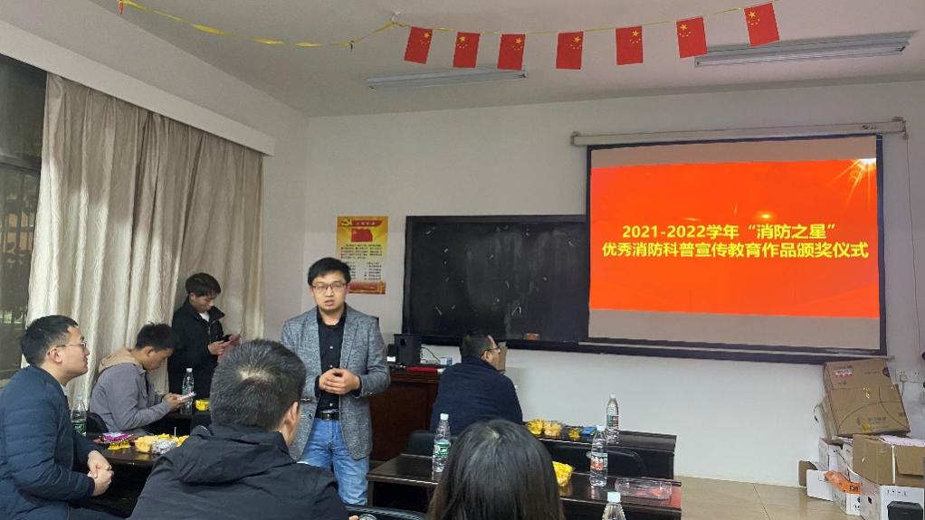 2022年3月4日15时,2021-2022学年“消防之星”优秀消防科普宣传教育作品颁奖仪式于防灾所一楼会议室进行。本次颁奖仪式邀请了消防工程系主任陈长坤老师、消防工程系党支部书记申永江老师,消防科学青年社指导老师杨涛老师与王峥阳老师莅临点评指导。