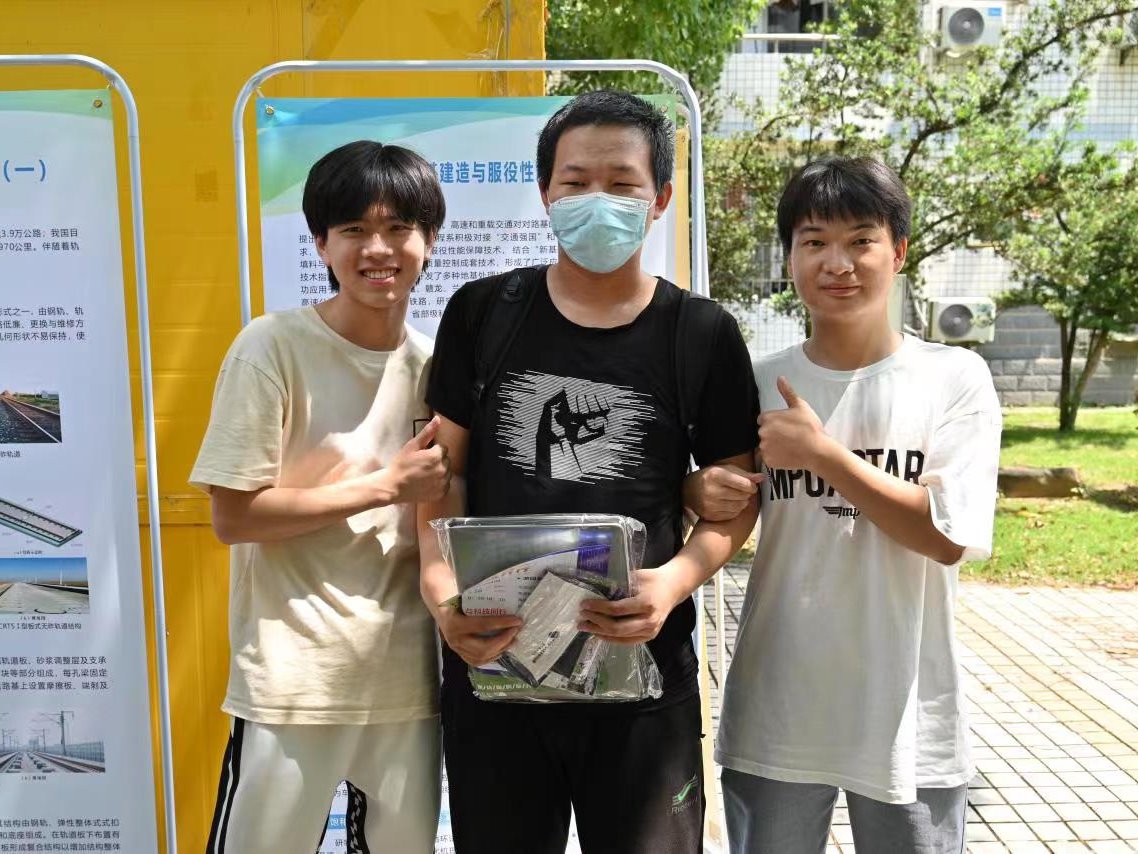 活动分为三个环节,参与者将依次参加各个环节。第一个环节是科技知识问答,参与者要在十分钟内回答工作人员准备的十个问题,根据答题正确率,获得相应的奖品。本环节的题目数量少但内容“精”、知识“新”,围绕高速铁路相关知识,延伸至整个轨道交通领域。参与者在答题的同时,也能充分了解到轨道交通方面的基本知识以及我国在高速铁路建造领域取得的伟大成就。第二个环节是模型搭建,参与者将在规定时间内,用长宽不一的松木条及相关辅助工具搭建桥梁或建筑模型,这是对参与者想象能力、动手能力的一大考验。正如:“实践是检验真理的唯一标准”,通过观察搭建成果,参与者能检验自己的桥梁结构是否稳固、建筑样式是否美观,起到了很好的激发兴趣的作用。第三个环节是基地研究成果展示,在活动现场,志愿宣讲员结合展出的科普展板,用通俗易懂的语言,向参与者介绍公司在土木工程相关专业领域的先进科研成果,同时与参与者互动,解答相关疑问。最后,完成三个“闯关”环节的同学会与工作人员积极交流探讨。其中一名来自土木工程专业的同学说到:“这次游园会,我印象最深的是知识问答的环节,因为明明与我学的专业息息相关,但我还是有那么多未知的领域,我有点惭愧但更多的是动力,是继续学习的动力。”